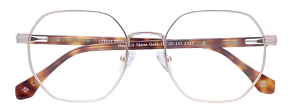 Hainault blends sleek metal craftsmanship with a bold geometric shape for a contemporary twist on vintage style. Finished in soft gold, these frames complement everything from cosy winter layers to sharp tailored looks.
