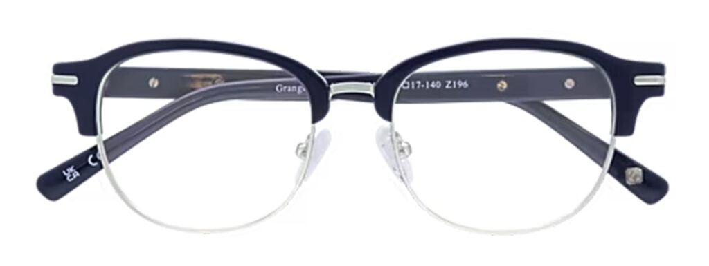 A modern take on the iconic Clubmaster, Grange combines striking blue acetate with sleek silver metal accents. This statement-making frame adds a contemporary edge to professional looks and transitions effortlessly to off-duty style.